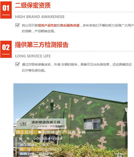 多年經(jīng)驗(yàn)偽裝波段范圍:可見光(380nm~760nm)和近紅外(760nm~1200nm); 外墻迷彩漆不是水漆。盡管水漆是一種環(huán)保型的涂料,;